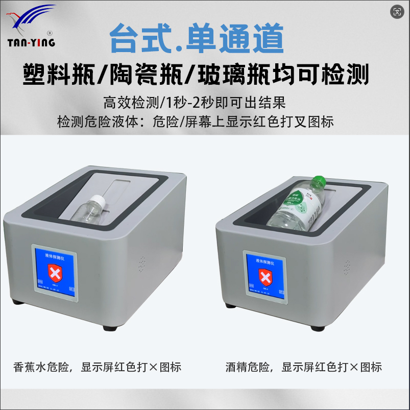 3、檢測(cè)速度:僅需1秒即能檢測(cè)出非金屬材質(zhì)瓶液體。