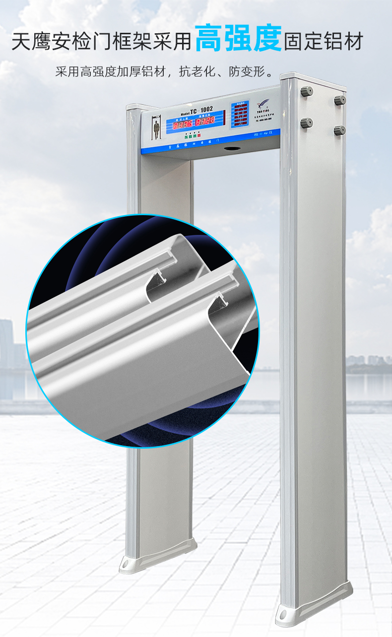 此款安檢門為室內(nèi)型安檢門,只適用于室內(nèi)安裝,材質(zhì)不防雨。